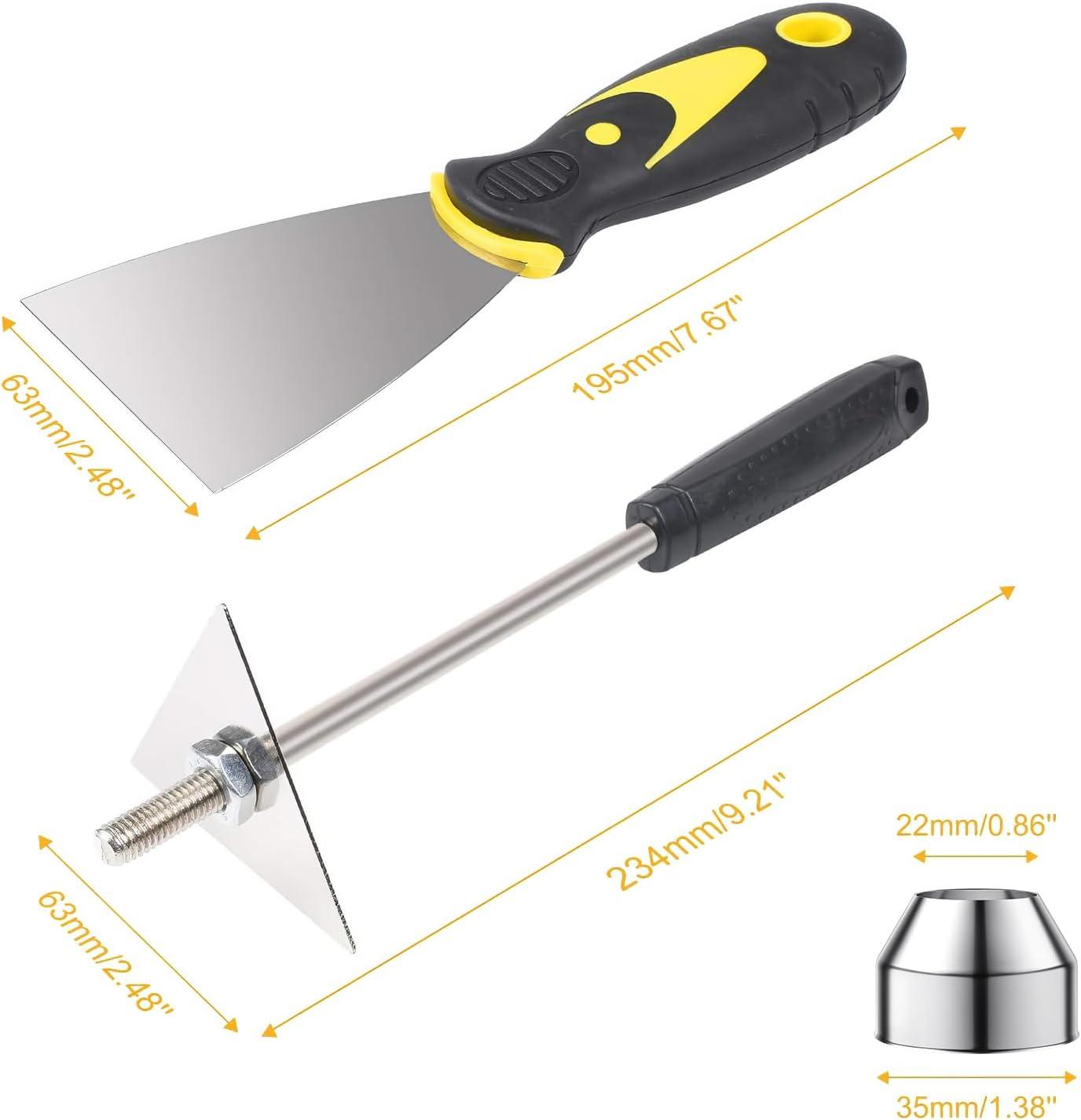 【Wide Aapplication】5 Differents heat gun nozzles used for controlling the flow of air and focusing heat to the desired area, best for shrink wrapping, crafting, embossing heating, painting, roofing, wire stripping, phone / auto glass repair, tint soldering / desoldering, plastic welding, PVC pipe bending, seized bolts & nuts loosening, replacing tile, waxing skis and snowboards, soften plastics as well as drying and thawing purpose. The scraper and putty knife main use for remove the paint