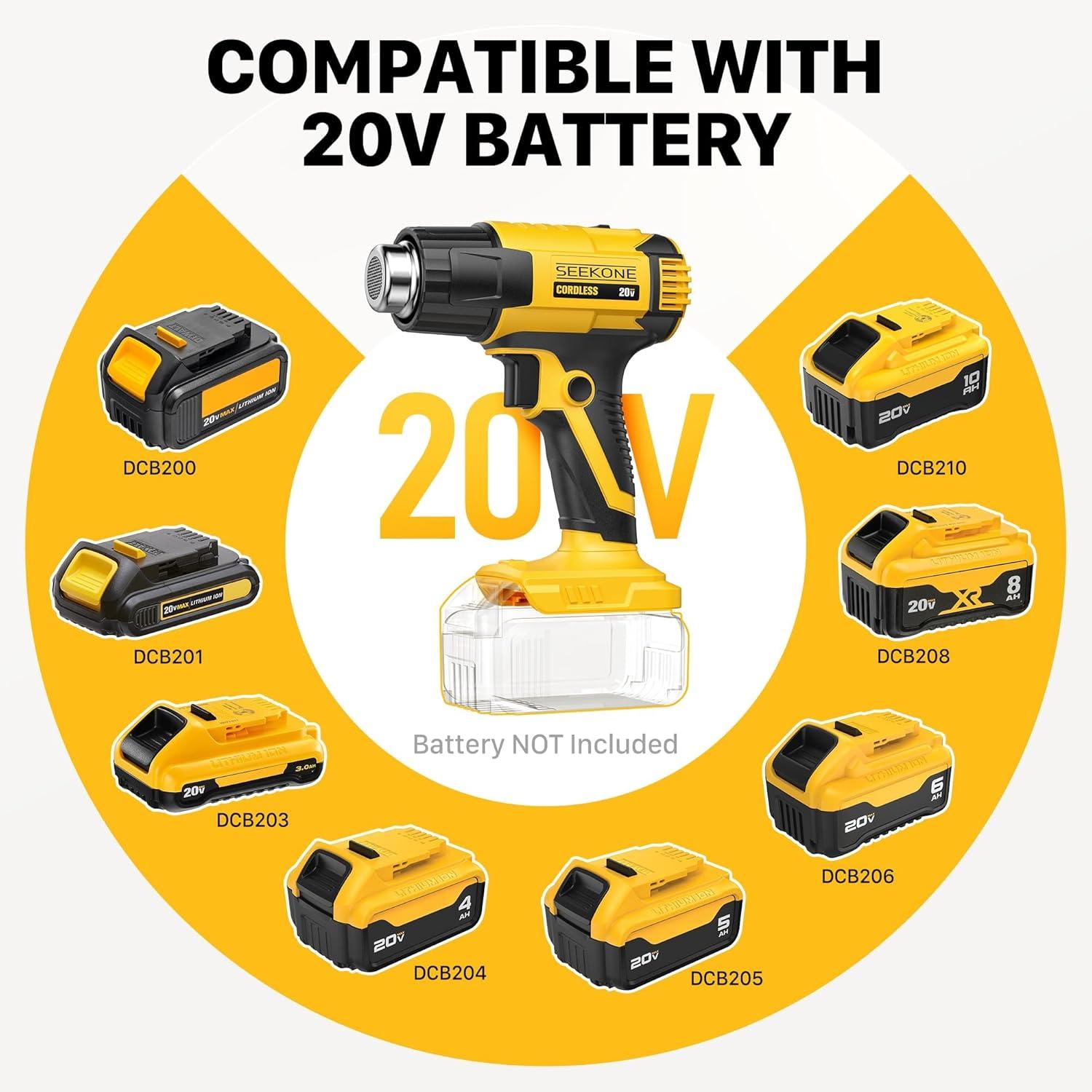 【Low Battery Cut-off Protection& Overheat Protection】When the battery voltage drops below 12 volts, the hot air gun will automatically cut off the power supply and activate the low battery power-off protection to prevent battery damage. Moreover, the SEEKONE heat gun also has built-in overheat protection, when exceeding the safe working temperature, the heat gun will automatically cut off the power, avoiding damage to your heat gun and circuit